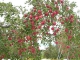 当園主は、つがるの着色系品種「芳明(ほうめい)」の開発者でもあり、県内のシナノスイートのくだものコンクールで最優秀賞を5回獲得。特にふじは熟しにくい年でも下垂枝の果実が熟している点に着目し、結果枝を下垂させる樹形を確立。視察に際し標高700mの園地で、下垂枝の特性・樹形づくりの基本の一端を紹介しました。