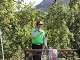 当園主は、つがるの着色系品種「芳明(ほうめい)」の開発者でもあり、県内のシナノスイートのくだものコンクールで最優秀賞を5回獲得。特にふじは熟しにくい年でも下垂枝の果実が熟している点に着目し、結果枝を下垂させる樹形を確立。視察に際し標高700mの園地で、下垂枝の特性・樹形づくりの基本の一端を紹介しました。
